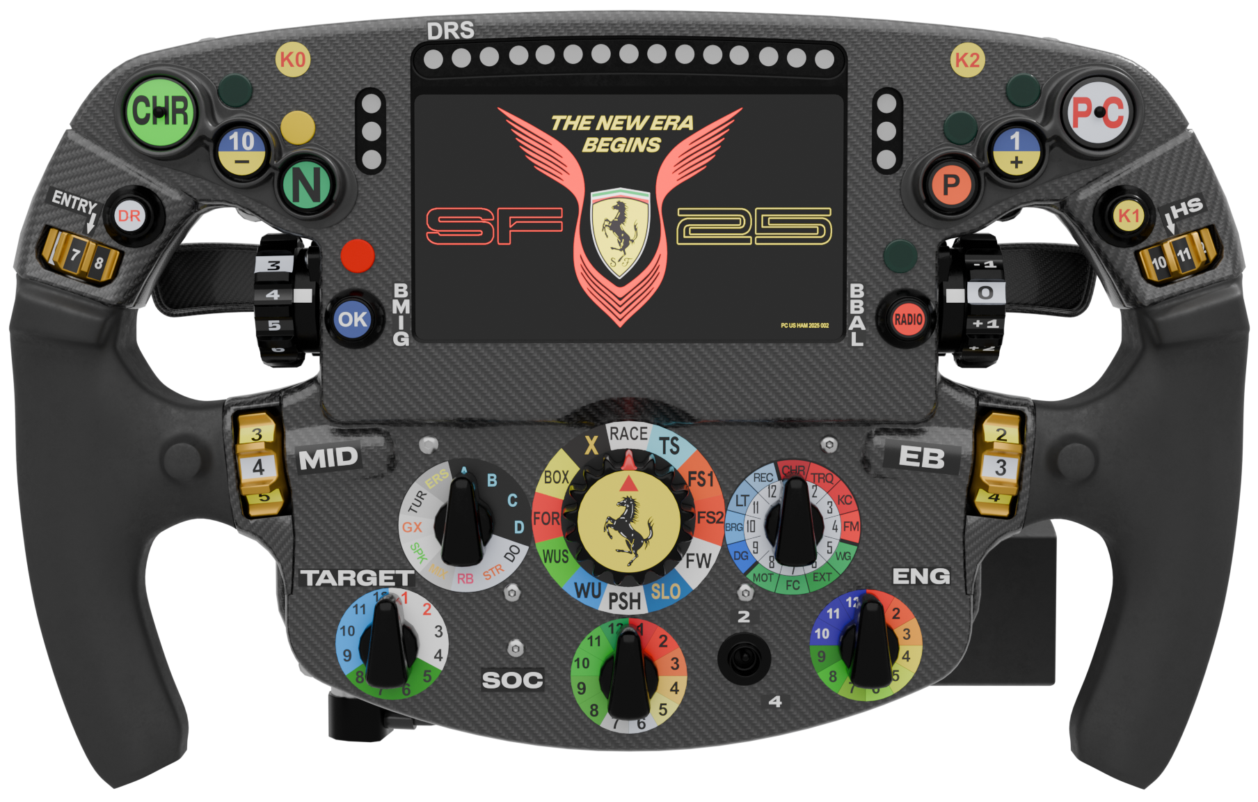 New steering wheel of Lewis Hamilton for new era in Ferrari, for the SF25 season 2025.