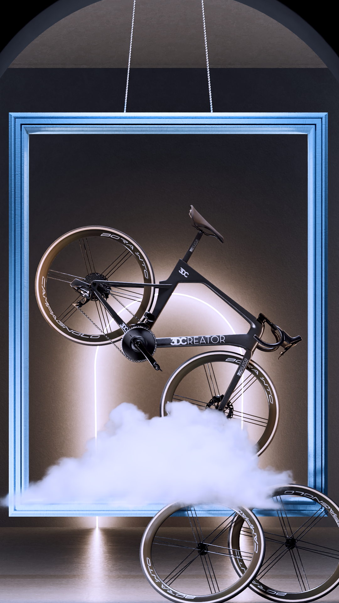Progetto che vuole essere più un concept per esprimere la leggerezza una bici più leggera di una nuova, racchiusa in una cornice quasi ad essere un opera d’arte d’ammirare.
